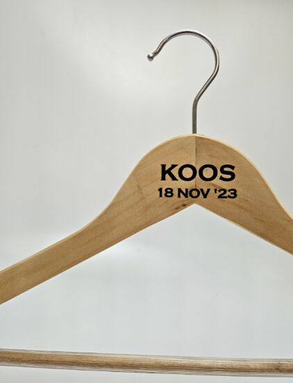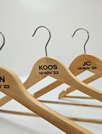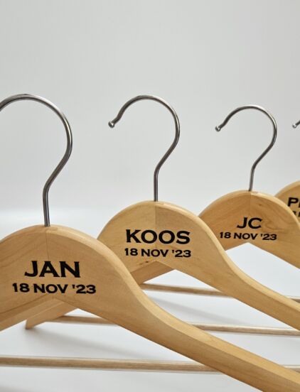 A modern, masculine font is used to engrave a Word/Name/Date on front